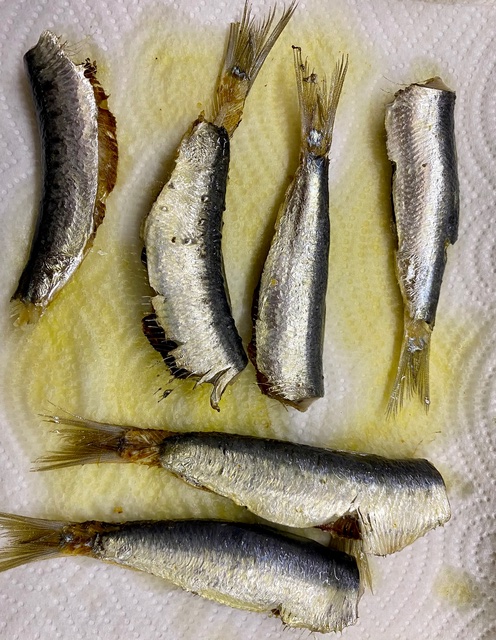 - Sardinen auf dem Küchenpapier gut abtropfen lassen.